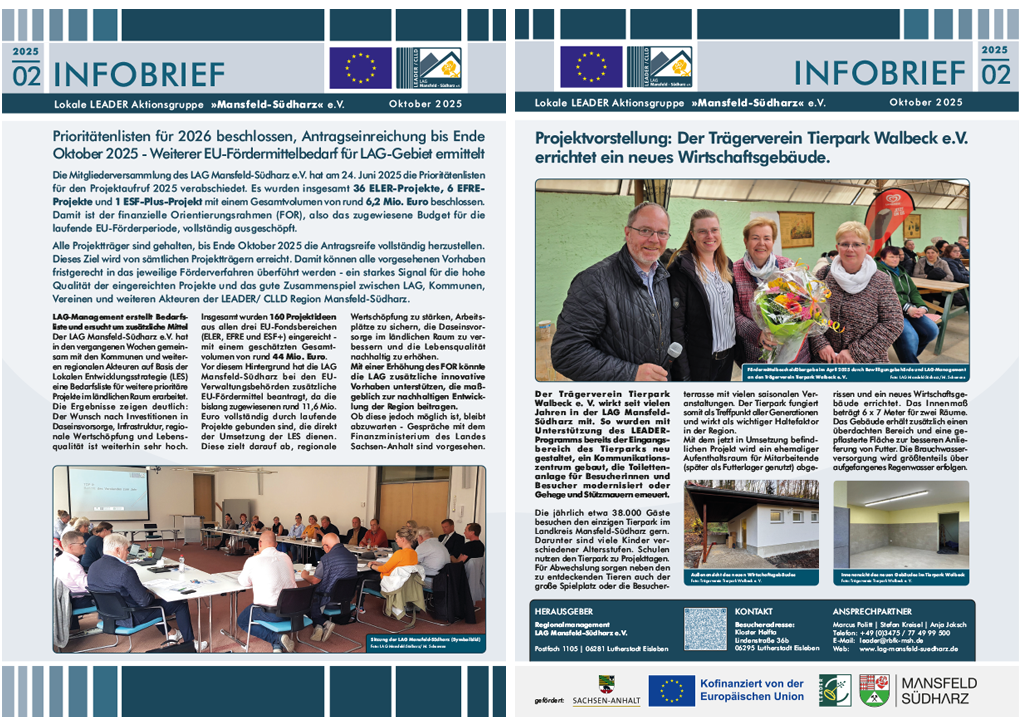 Nachdem die LEADER Aktionsgruppe „Mansfeld – Südharz“, jetzt LAG Mansfeld – Südharz e.V. in enger Abstimmung mit dem Kreistag und der Verwaltung des Landkreises die Zulassung als „LEADER – Gebiet“ für die Förderperiode 2021 –...